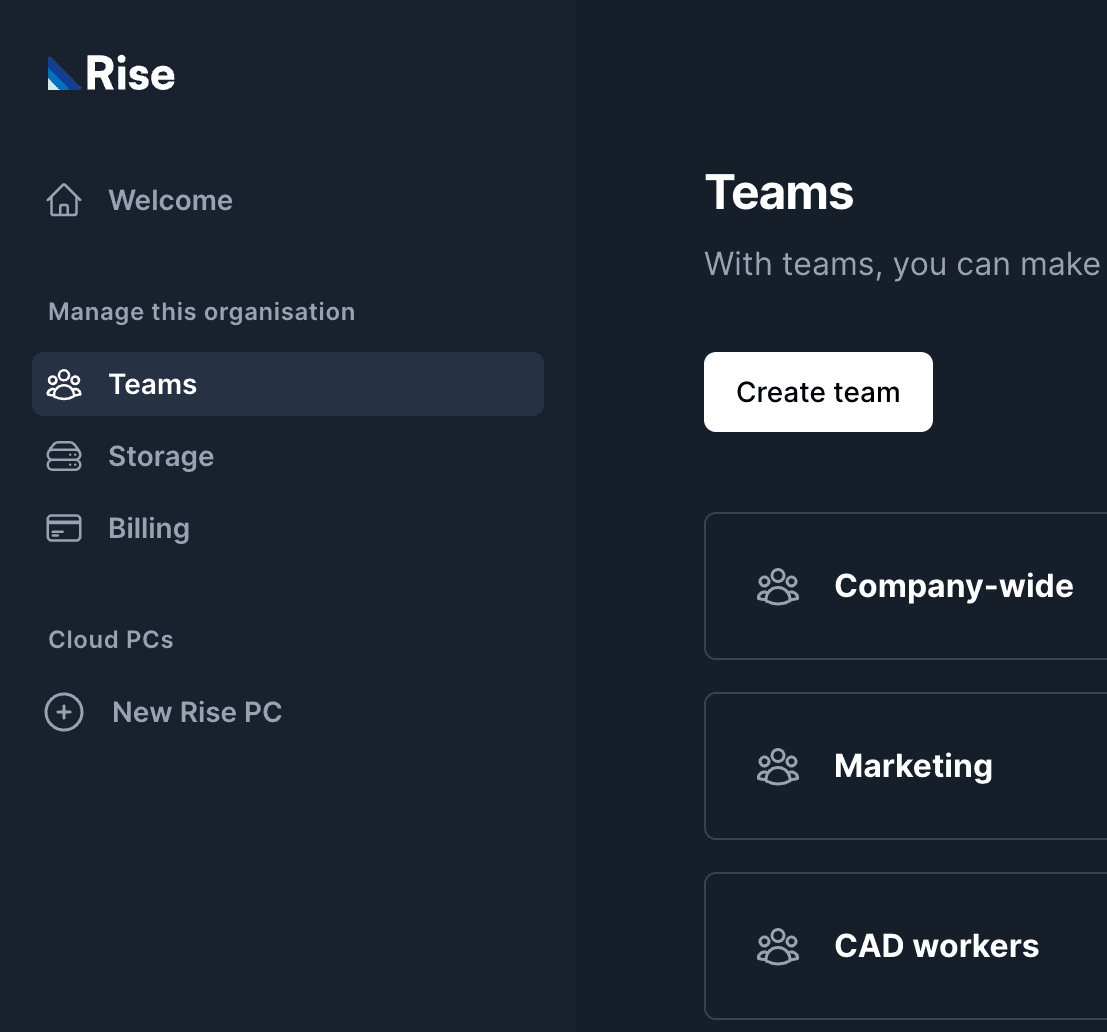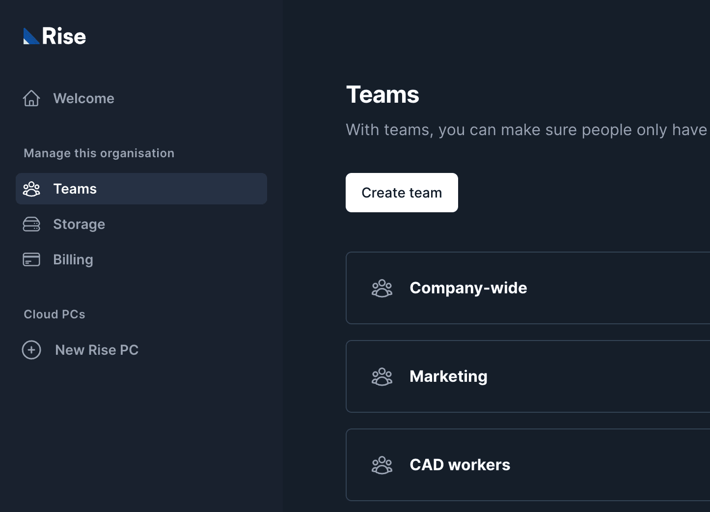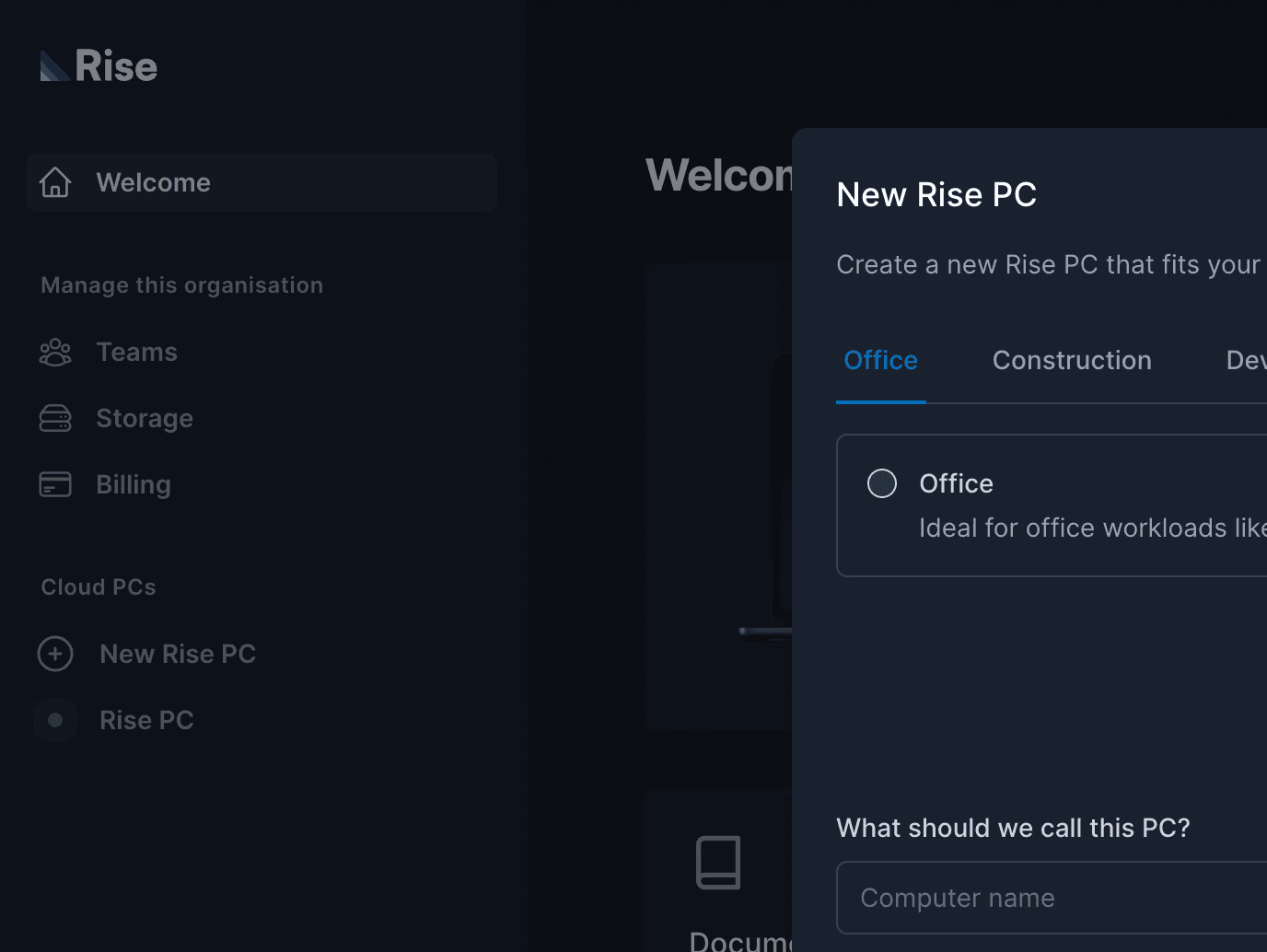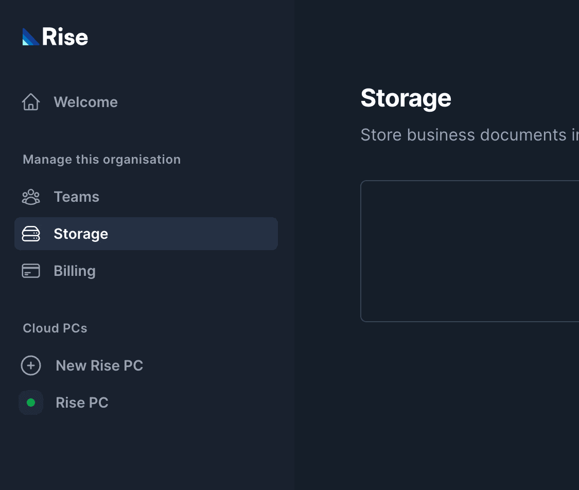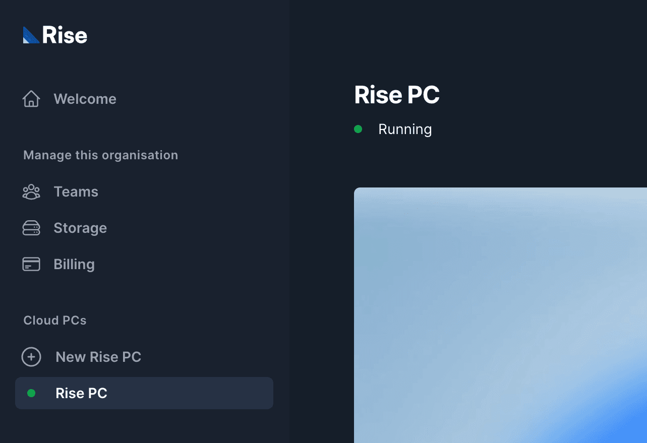 With Rise, your personal Cloud PC is just one click away. Instantly launch your desktop environment and get to work, minimal setup, no delays. Everything runs securely in the cloud, managed effortlessly without IT support.
